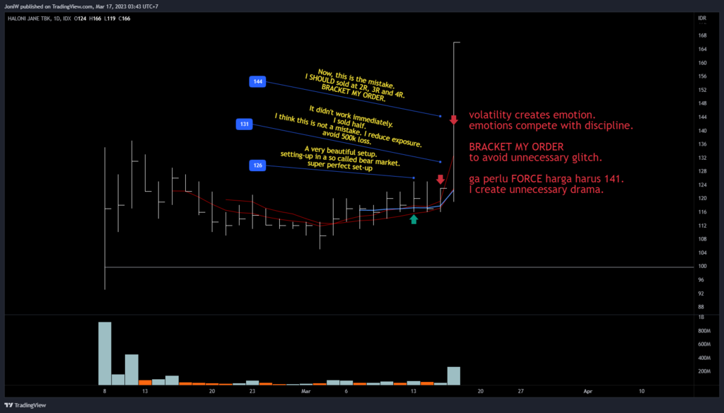 What I should DO? JUST SELL HALF!. Target at 141, feel uncomfortable then sell half at 139, another half at 151 an another half at 200. That will 4R profit with 30% run.